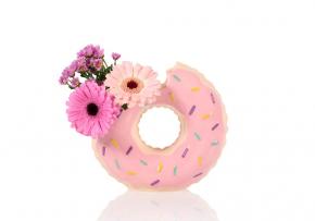 אגרטל מושלם ומתוק במיוחד בצורת דונאט ורוד עם סוכריות. מידות: 15.5*13.5*15.5 ס"מ חומר: קרמיקה איכותית עם גימור מבריק