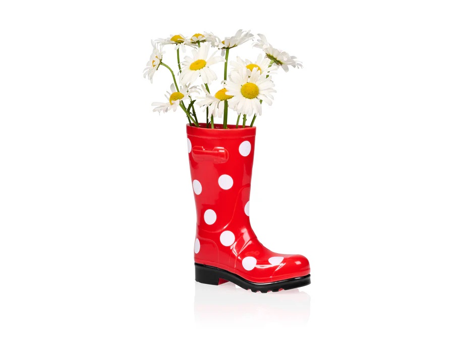 אגרטל פורצלן מעוצב בעיצוב מקורי וייחודי של מגף וינטאג' אדום עם נקודות. תוספת נהדרת לעיצוב הבית שממלאת את הבית בהמון אופי וסגנון! מידות: 19.5*9.5*15.5 ס"מ