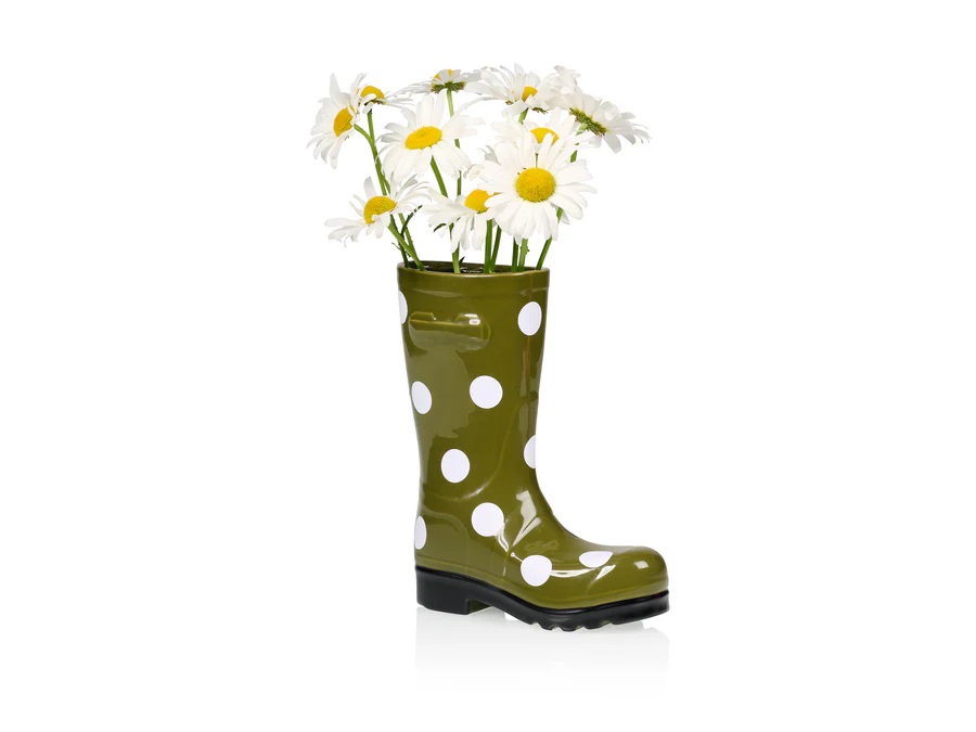 אגרטל פורצלן מעוצב בעיצוב מקורי וייחודי של מגף וינטאג' ירוק עם נקודות. תוספת נהדרת לעיצוב הבית שממלאת את הבית בהמון אופי וסגנון! מידות: 15.5*9.5*19.5 ס"מ