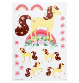 מארז של מדבקות מקסימות באיורים של סוס ופרחים במארז 17 מדבקות הנדבקות בקלות על קיר, דלת או ארון וניתנות להסרה ללא קושי גודל העמוד 35X50 40% הנחה
