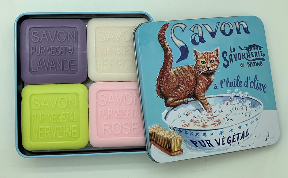 קופסת פח מאוירת ובה 4 סבונים במשקל 100 גר' כל אחד מתנה מקסימה לחובבי הנוסטלגיה והריחות הטובים... מחיר מומלץ לצרכן 89 ש"ח מיקס ריחות: וורבנה לימוני, רוז, לוונדר, כותנה