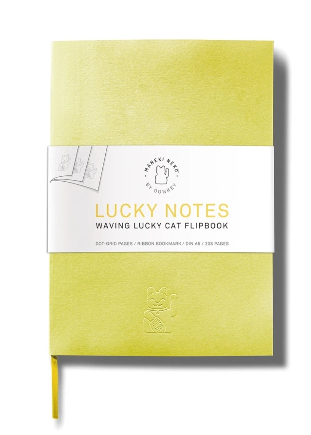 מחברת נקודות גודל A5 208 עמודים חתול המזל הקטן המוטבע על הכריכה נותן השראה ומעלה חיוך משמעות הצבע הצהוב-עושר ושגשוג והבונוס? דפדפו במהירות בפינת המחברת והחתול הקטן יעשה לכם שלום!