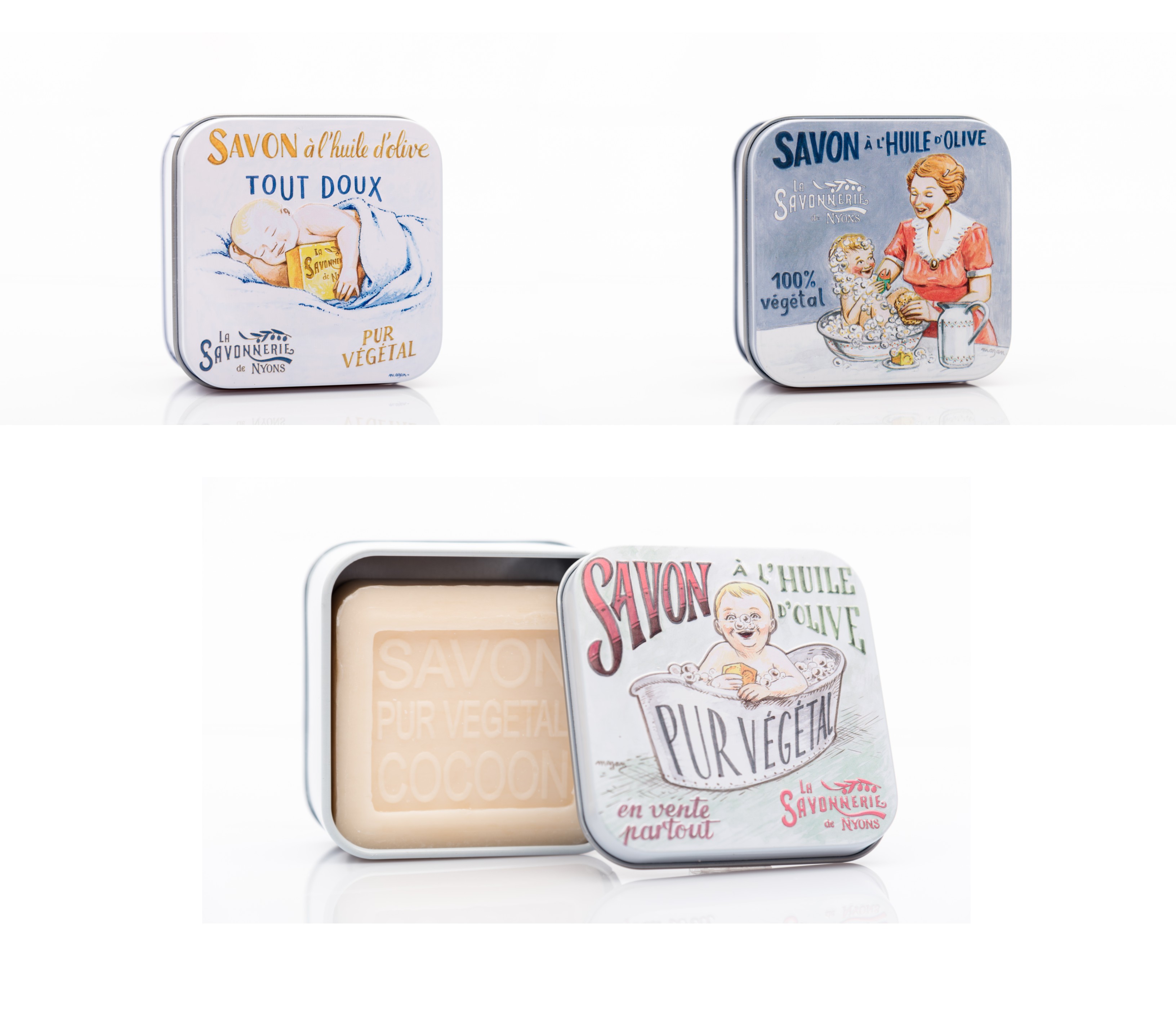 סבון במשקל 100 גר', מגיע באריזת פח מאוירת באיור נוסטלגי ושובה לב בסדרה זו קיימים 3 דגמים שונים, המחיר הוא למארז ובו 12 יח' סבון (4 יחידות מכל דגם) מחיר מומלץ לצרכן 35 ש"ח ליח' ריח קוקון (ריח תינוקי נקי ועדין)