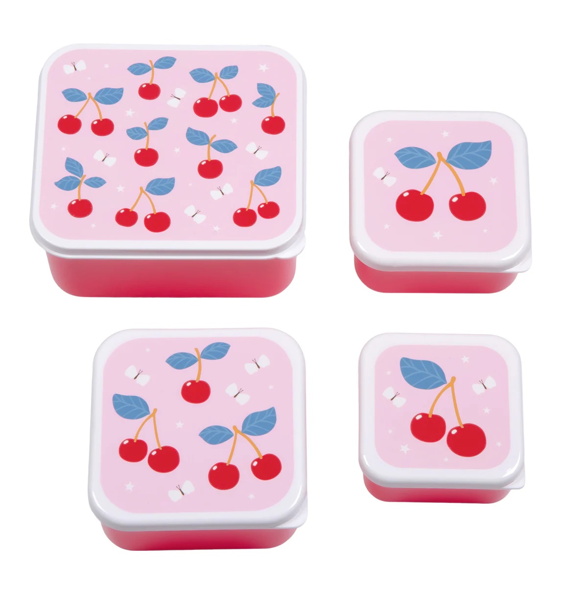 סט של 4 קופסאות בגדלים שונים עם הדפס דובדבנים. הכי גדולה 15.8X14X7 הכי קטנה 9X9X4.5 עשויות PE נטול BPA שטיפה ידנית בלבד