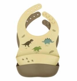 מארז ובו זוג סינרי אוכל עם כיס רחב וסגירה מתכווננת סינר אחד חלק והשני עם איורים של דינוזאורים עשוי סיליקון איכותי המתאים למזון ללא BPA, PVC או פתלאטים