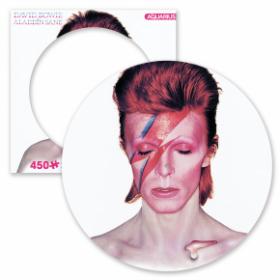 פאזל 450 חלקים בעיצוב האלבום ALADDIN SANE של DAVID BOWIE האריזה נראית כמו עטיפת התקליט ובתוכה פאזל עגול קוטר 31X31 בצורת תקליט
