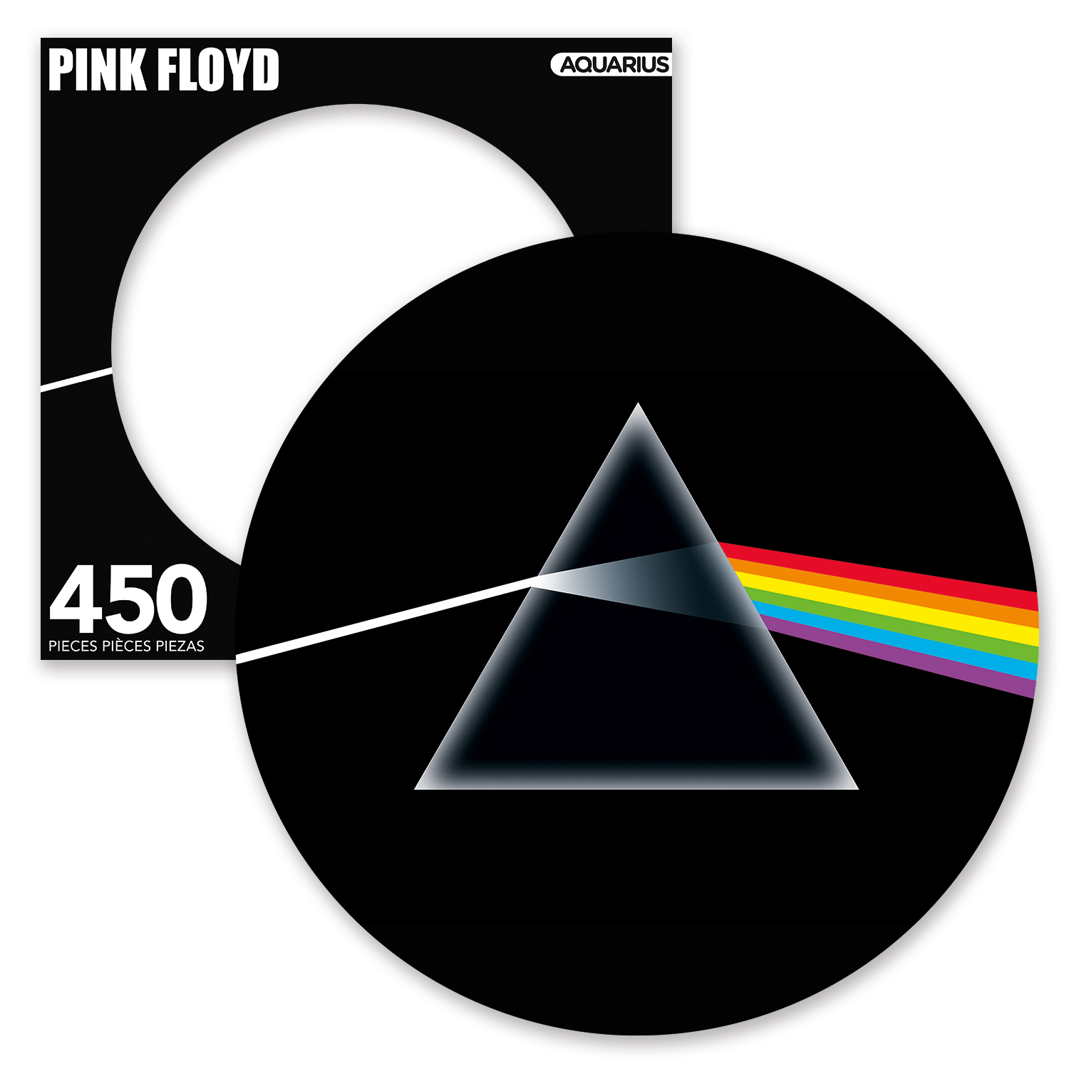 פאזל 450 חלקים בעיצוב האלבום THE DARK SIDE OF THE MOON של PINK FLOYD האריזה נראית כמו עטיפת התקליט ובתוכה פאזל עגול קוטר 31X31 בצורת תקליט
