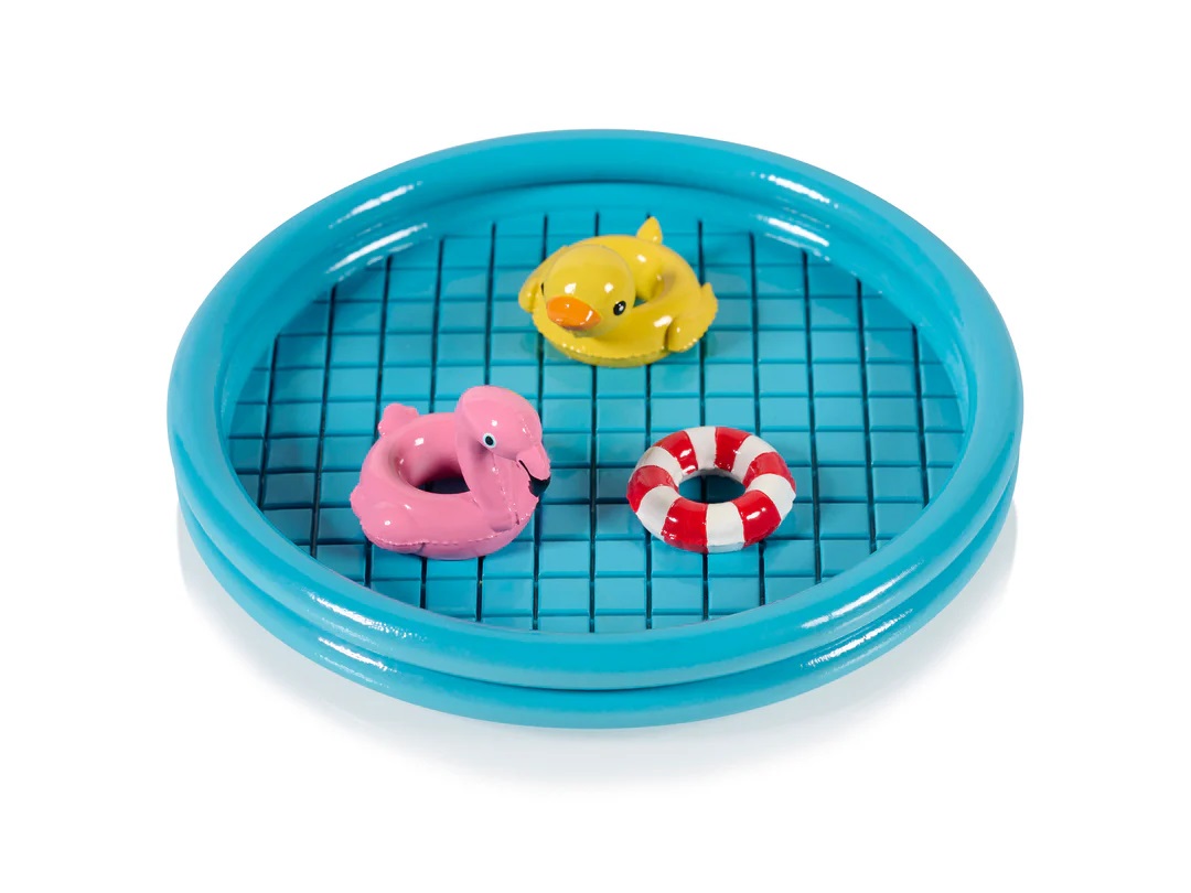 עיצוב מקסים של בריכה קיצית ובה גלגלי ים מתוקים.
