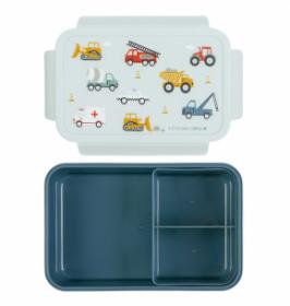קופסת אוכל בסגנון בנטו עם מגש תחתון ותאים נשלפים באיורים של כלי תחבורה. עשוי PP ללא BPA. מידות: 14.5*7*22 ס"מ לא מתאים למיקרו ולא למדיח.