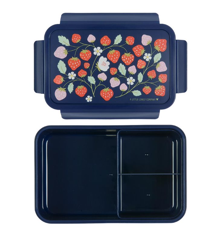 קופסת אוכל בסגנון בנטו עם מגש תחתון ותאים נשלפים באיורים של תותים. עשוי PP ללא BPA. מידות: 14.5*7*22 ס"מ לא מתאים למיקרו ולא למדיח.