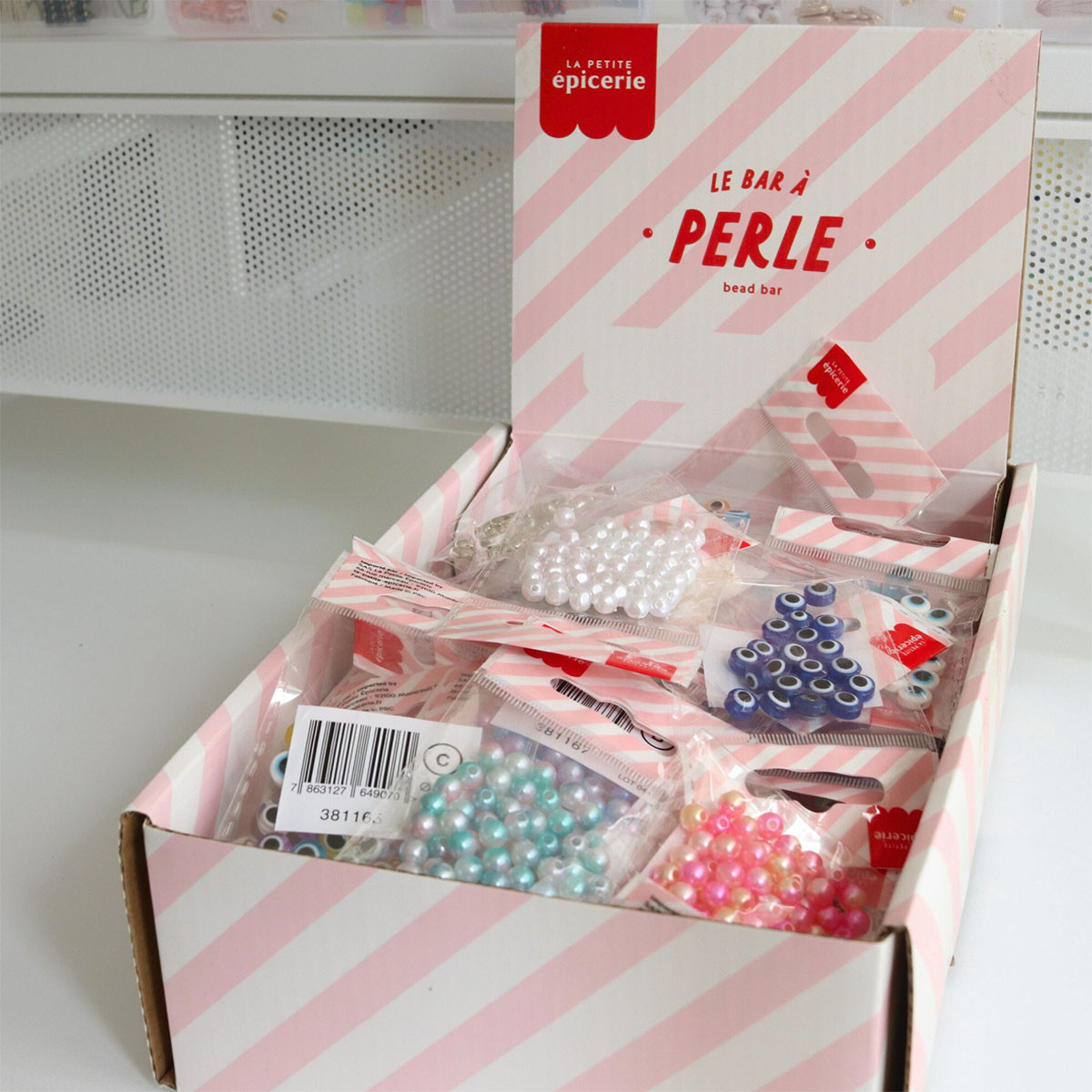 דיספליי מסדרת BEAD BAR של חרוזים בסגנון "טבעי" כגון פנינים, חרוזי עין ועוד