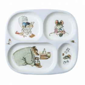 צלחת מחולקת עם איורי הדמויות המקסימות ארנסט וסלסטין - הדוב והעכברה מחולקת ל 4 "תאים" עשוייה ממלמין איכותי ניתנת לשטיפה במדיח לא מתאימה לחימום במיקרו
