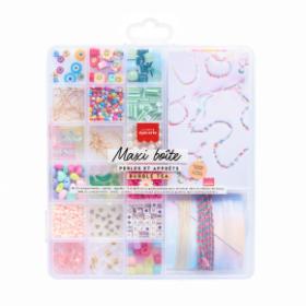 ערכה חלומית ליצירת תכשיטים ואקססוריז, מיועדת לנערות/נשים. קופסה גדולה עם תאים (ארגונית) עם מגוון חרוזים מכל מיני חומרים, חוט ניילון, חוטי כותנה, סוגרי זהב.