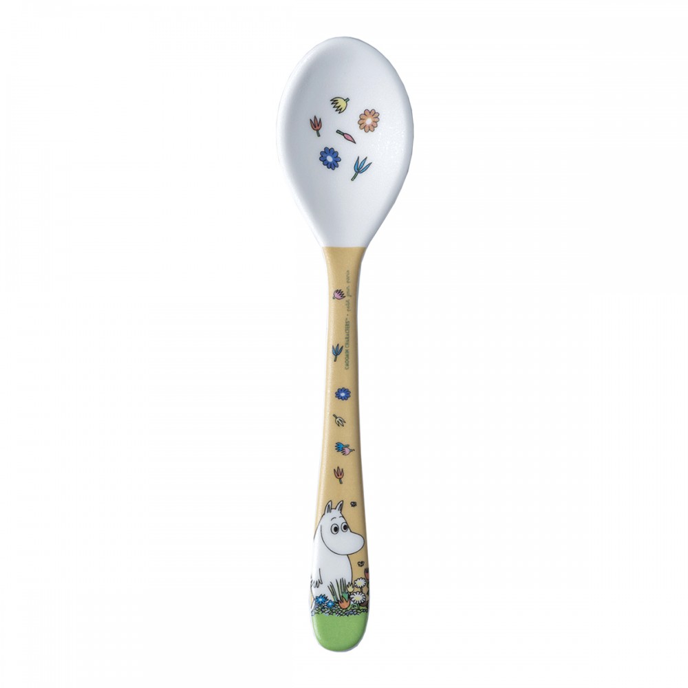 כפית קטנה עם איורים חמודים של המומינים אורך 14 ס"מ עשויה מלמין איכותי מתאימה למזון חם או קר ניתן לשטוף במדיח לא למיקרוגל